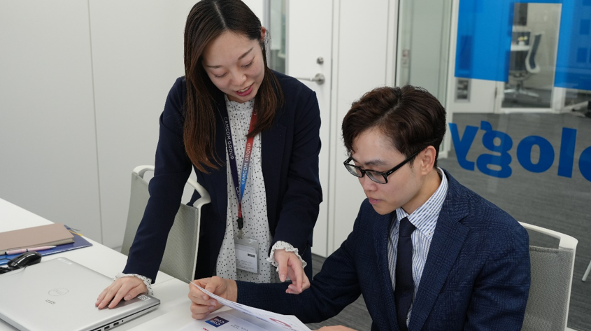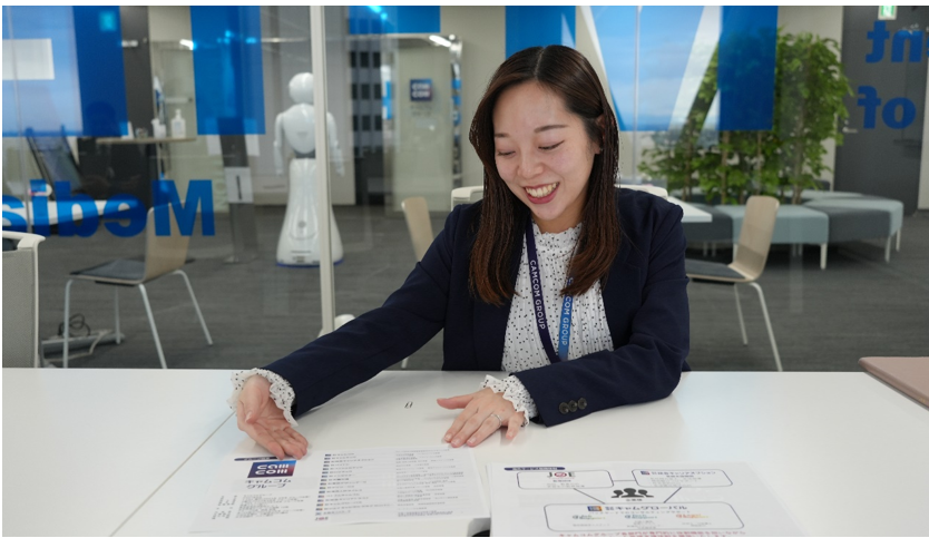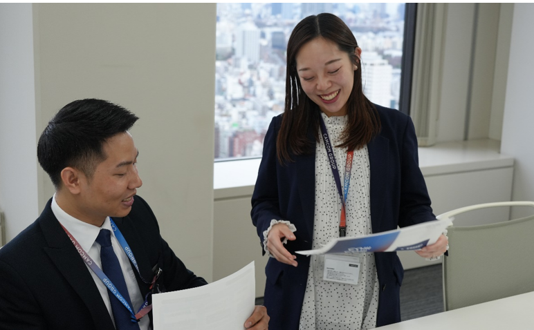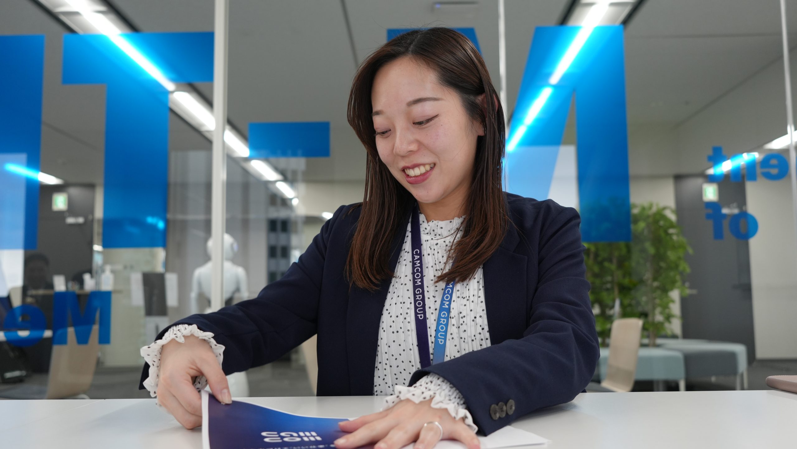 キャムコムグループ(株式会社綜合キャリアオプション)で外国人労働者の皆さんと共に働く日本人スタッフの日常を紐解く社員インタビュー。今回は、企業様に外国人材及び関連サービスの提案、就業中の外国人の方のサポート業務に励む、松田有里那さんにお話を伺います。