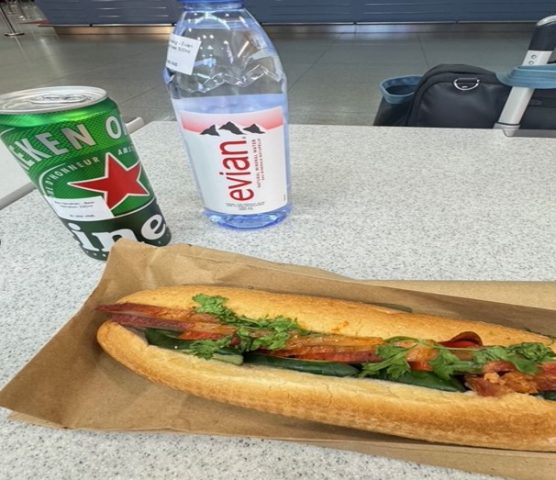 —そして今、私は念願のバインミーを胃袋に納め、飛行機に乗っている。出張疲れの中、仮眠も取らずキーボードを叩いているのには理由がある。両隣は、東南アジア系の方と見られる恰幅の良いおばさまと若者、下は硬い座面、背後はリクライニングがききそうできかないシート、前方は足を鋭角に折り畳むほどしかない省スペースに挙動が阻まれているのである。控えめに言って辛い!