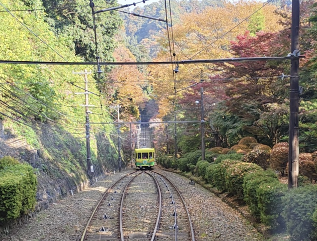 下山はケーブルカーで。鮫島さんにチケットを買っていただき、しかも偶然にも1番前の席に案内されたおかげで、美しい景色を堪能しながら降りることができました。
