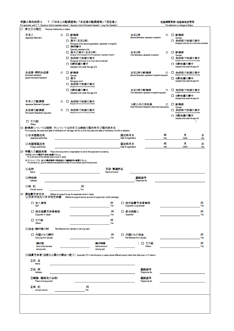 - ○ 希望期間:自身の在留資格で許可されうる期間(例:5年、3年、1年)を参考に希望を記入(ただし最終決定は入管にあり)