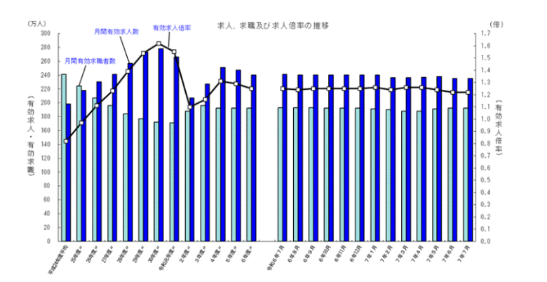出典:一般職業紹介状況(令和7年7月分)について | 厚生労働省