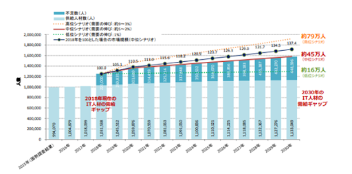 こうしたIT需要に対して、国内のIT人材は依然として不足しており、需要と供給のギャップは今後さらに深刻化すると予想されます。