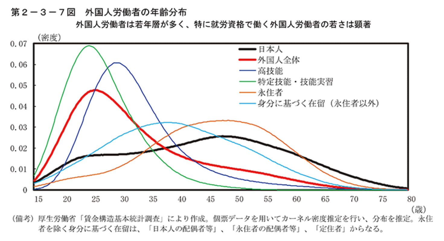 出典:内閣府「第2‑3‑7図 外国人労働者の年齢分布」(年次経済財政報告)