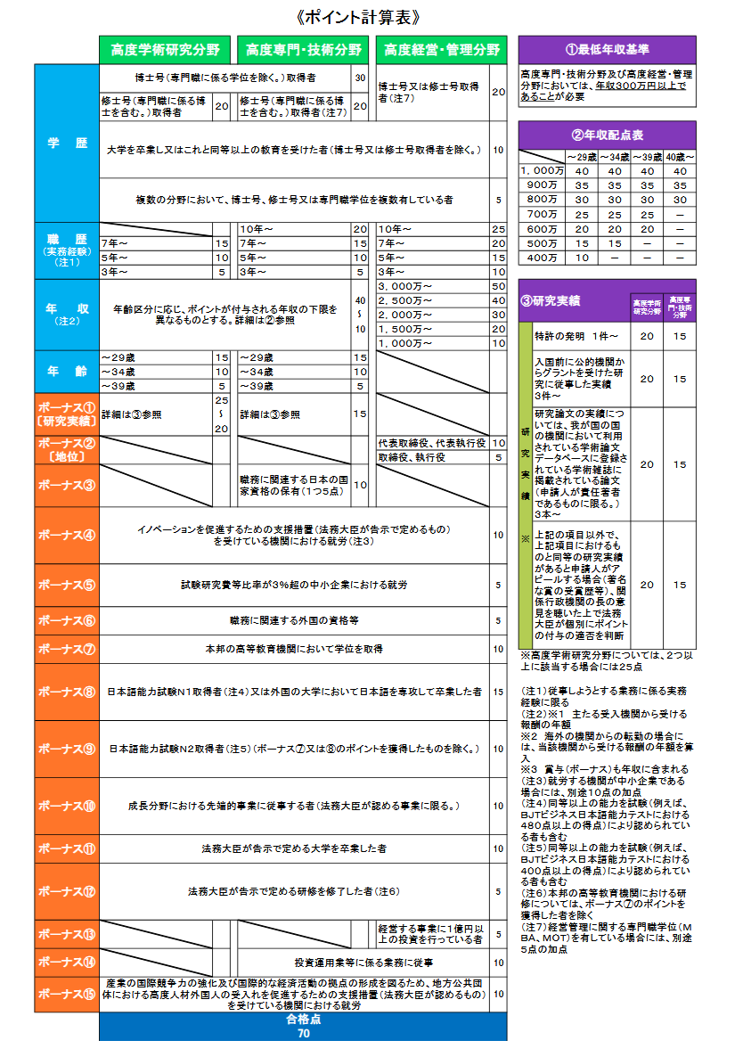 - 「高度人材ポイント制」の仕組み:ポイント計算と基準