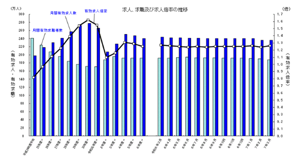 有効求人倍率は令和6年3月からほぼ変わらず、依然として高水準をキープしています。