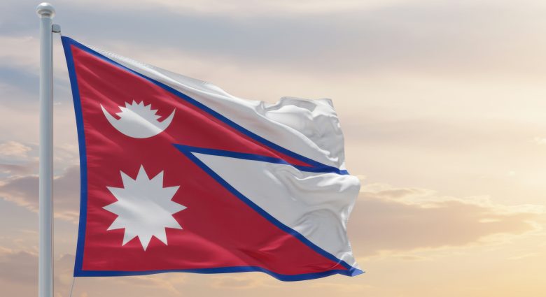 ネパールの正式名称は、かつて「ネパール連邦民主共和国」でしたが、2020年の憲法改正により、正式国名は「ネパール」となりました。国旗は世界で唯一、四角形ではない形状をしています。この独特のデザインは、かつてネパールを統治していたシャハ家とラナ家という2つの王家が使用していた三角旗を組み合わせたもので、国の歴史を象徴しています。また、この形はヒマラヤ山脈を表しているともいわれています。国旗の赤色(クリムゾンレッド)は国民の勇敢さを、青い縁取りは平和への願いを表現しています。上の三角旗に描かれた月と下の三角旗の太陽には、「国が太陽と月のように永遠に栄えるように」という願いが込められています。