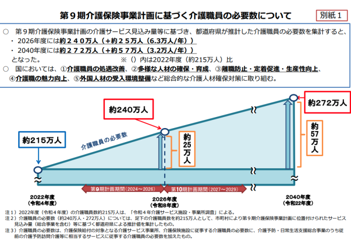 介護業界の人手不足に関しては、「需要の増加」と「供給の不足」という二大構造要因が背景にあります。以下に具体的なデータとともに解説します。